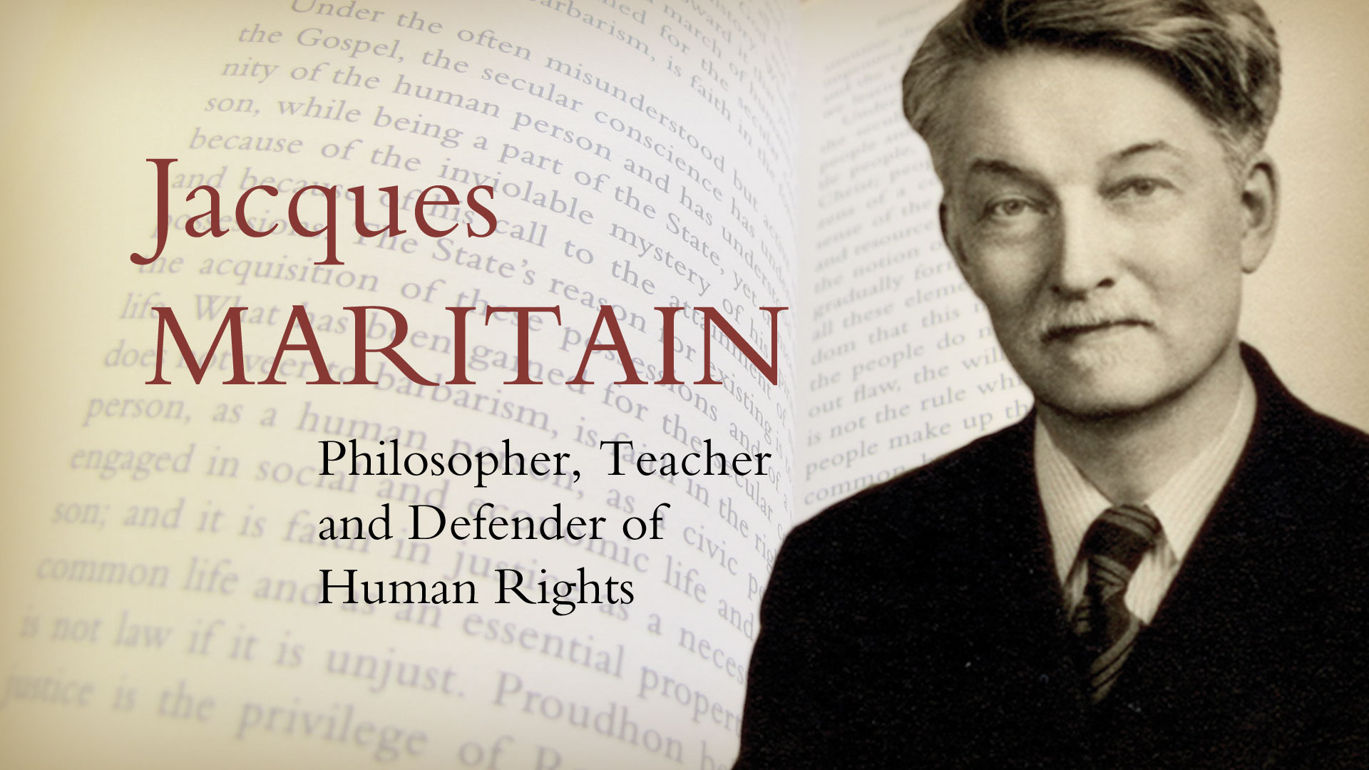 This film tells the story of Jacques Maritain, a highly respected French philosopher, teacher and writer in the 20th century, who was a principal exponent of Thomism and an influential interpreter of the thought of St Thomas Aquinas. He lived for many years in the United States, and taught at Princeton University and Columbia University. After WWII, he served as the French ambassador to the Vatican, and he also helped draft the United Nations Universal Declaration of Human Rights (1948). Maritain was born in 1882 in Paris, and studied at the Lycee Henri IV and at the Sorbonne where he fell in love with Raissa Oumancoff, a Russian emigrant student of Jewish origin. This was the beginning of an extraordinary love story, and they married in 1904. In search of truth and tormented by existential questions, they decided to search intensely for a year to discover the meaning of life, and if that meaning not found, they would commit suicide together. Through the philosophy of Henri Bergson, and the literature and friendship of Léon Bloy, they found the answers they sought, in the Catholic faith. They were baptized June 11, 1906. Jacques became a famous philosopher and writer, teaching at the Institut Catholique from 1914 - 1939, and Raissa became a noted poet and mystic. The Maritains were friends with many well-known personalities in the arts, politics and the Church: Peguy, Bloy, Cocteau, Green, Bernanos, Rouault, Chagall, Satie, De Gaulle, Cardinal Journet, Pope Paul VI and many others. Those relationships are explored in this documentary film. Jacques was deeply engaged in the battles of his time denouncing anti-Semitism, fascism, Nazism, and during World War II the Maritains took refuge in America. Jacques taught at Columbia and Princeton from 1941-1944, and then became the ambassador of France to the Vatican for 5 years after the war. After Raissa died in 1960, Jacques lived in the religious community of the Little Brothers of Jesus in Toulouse until his death in 1973. He is buried next to Raissa in Kolbsheim, France.
